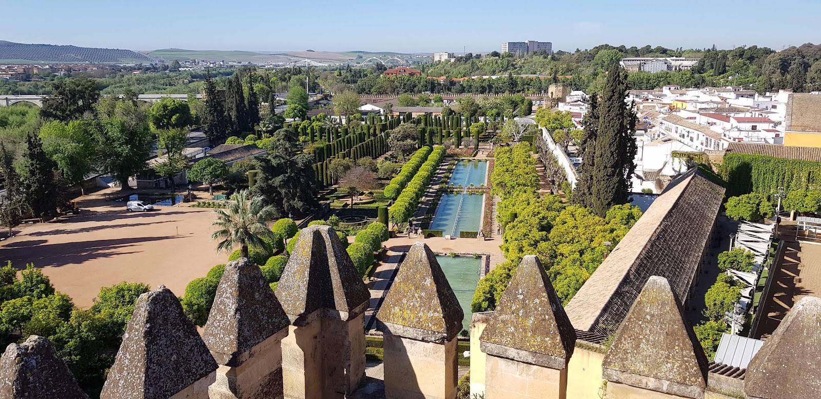 We walked along the riverfront to the Alcazar de los Reyes Christianos. While Lyn waited on the wall connecting the two main towers I climbed to the top for the view.